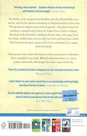 He thinks, as he escapes from Zanzibar, that he will probably never return, and yet the dream of studying in England matters above that Things do not happen quite as he imagined – the school where he teaches is cramped and violent, he forgets how it feels to belong. But there is the beautiful, rebellious Emma, who turns away from her white, middle-class roots to offer him love and bear him a child. And in return he spins stories of his home and keeps her a secret from his family.