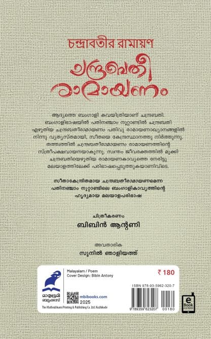 സീതാകേന്ദ്രിതമായ ചന്ദ്രബതീരാമായണമെന്ന പതിനഞ്ചാം നൂറ്റാണ്ടിലെ ബംഗാളികാവ്യത്തിന്റെ ഹൃദ്യമായ മലയാളപരിഭാഷ