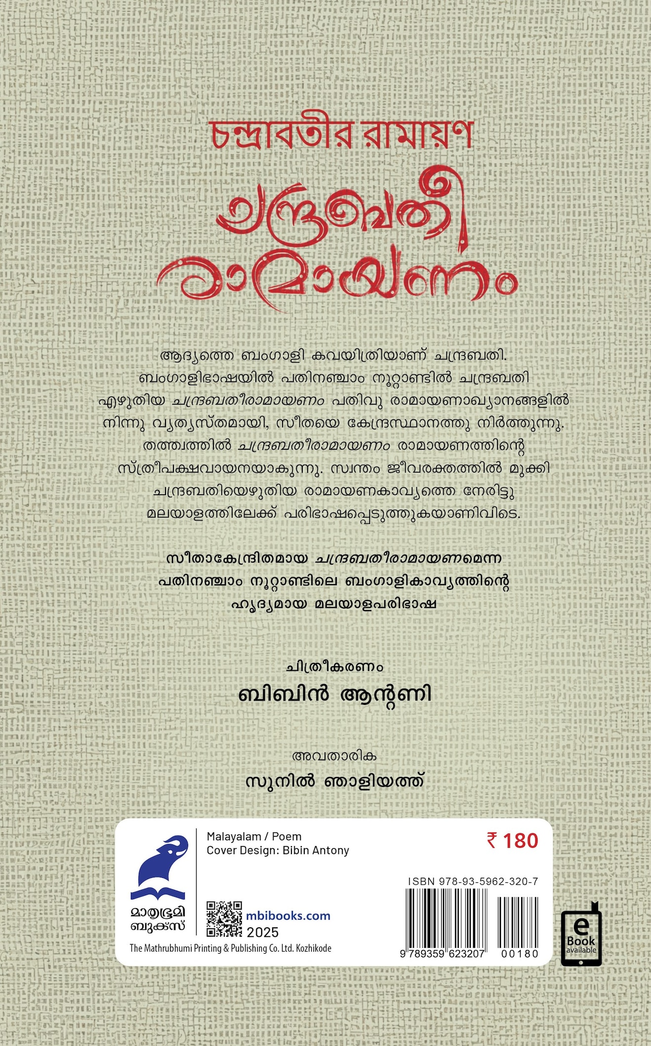 ആദ്യത്തെ ബംഗാളി കവയിത്രിയാണ് ചന്ദ്രബതി. ബംഗാളിഭാഷയില് പതിനഞ്ചാം നൂറ്റാണ്ടില് ചന്ദ്രബതി എഴുതിയ ചന്ദ്രബതീരാമായണം പതിവു രാമായണാഖ്യാനങ്ങളില് നിന്നു വ്യത്യസ്തമായി, സീതയെ കേന്ദ്രസ്ഥാനത്തു നിര്ത്തുന്നു. തത്ത്വത്തില് ചന്ദ്രബതീരാമായണം രാമായണത്തിന്റെ സ്ത്രീപക്ഷവായനയാകുന്നു. സ്വന്തം ജീവരക്തത്തില് മുക്കി ചന്ദ്രബതിയെഴുതിയ രാമായണകാവ്യത്തെ നേരിട്ടു മലയാളത്തിലേക്ക് പരിഭാഷപ്പെടുത്തുകയാണിവിടെ.