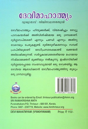 ദേവീമാഹാത്മ്യം ഹിന്ദുക്കൾക്ക്, വിശേഷിച്ചും ദേവ്യുപാസകന്മാർക്ക് അതിവിശിഷ്ടമായ ഒരു ഗ്രന്ഥമാണ്. ദുർഗ്ഗാസപ്തശതീ എന്നും ചണ്ഡി എന്നും അതിനു വേറെയും പേരുകളുണ്ട്. ദുരിതദൂരീകരണവും സമ്പത് പ്രാപ്തിയുമാണ് ദേവീപ്രസാദംകൊണ്ട് ഭക്തന്മാർ അഭിലഷിക്കുന്നത്. സർവ്വകാമവരേശ്വരിയായ മഹാമായ നിഷ്കാമഭക്തന് മുക്തിയും നൽകുന്നു. ഇഷ്ടസിദ്ധിക്ക് ദുർഗ്ഗയെപ്പൊലെ സംസേവ്യയായി ഒരു ദേവതയില്ല; ആ ദേവിയെ ആരാധിക്കാൻ ദേവീമാഹാത്മ്യത്തിനു തുല്യം ഒരു ഗ്രന്ഥവുമില്ല.