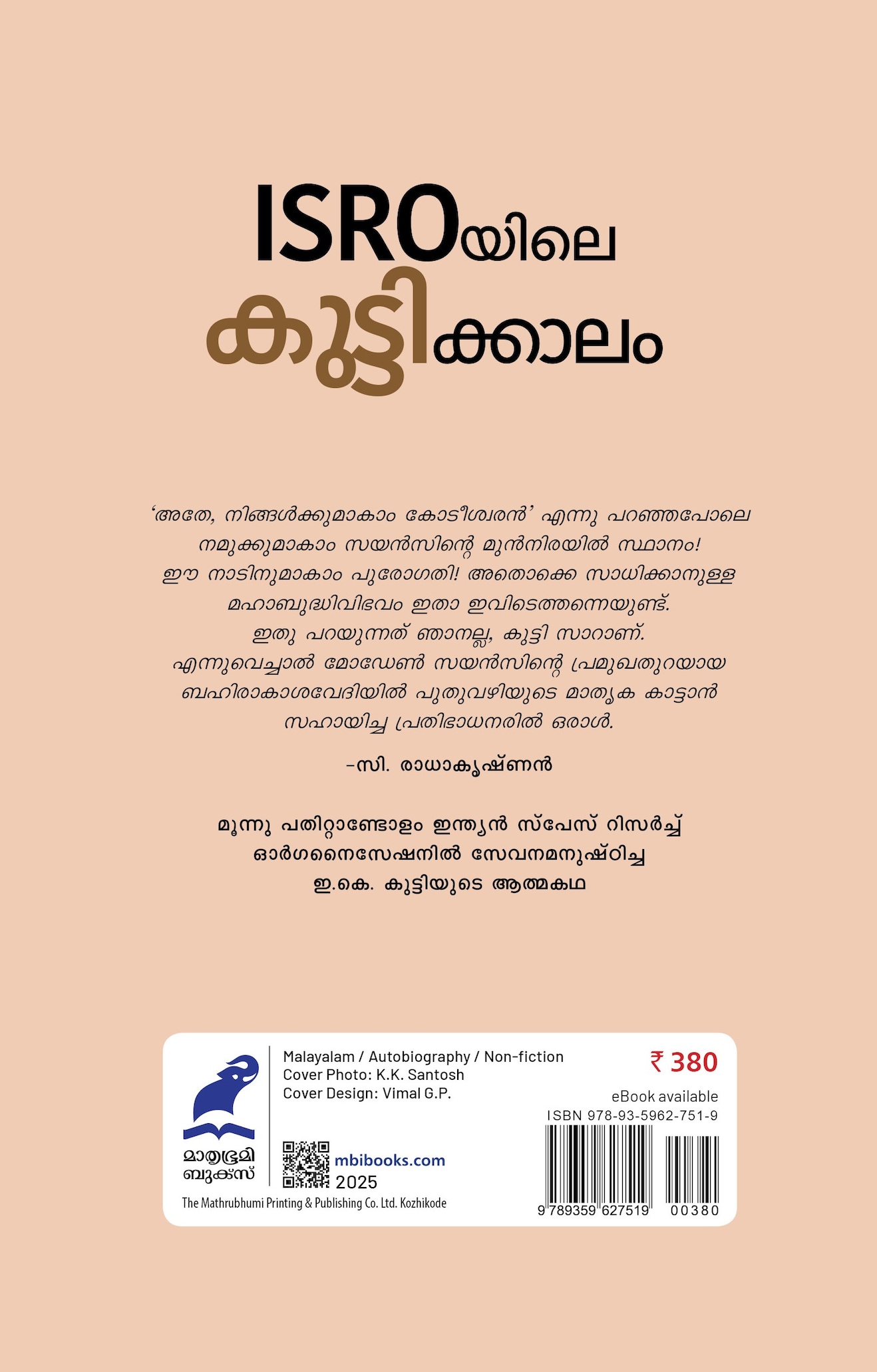 മൂന്നു പതിറ്റാണ്ടോളം ഇന്ത്യന് സ്പേസ് റിസര്ച്ച് ഓര്ഗനൈസേഷനില് സേവനമനുഷ്ഠിച്ച ഇ.കെ. കുട്ടിയുടെ ആത്മകഥ