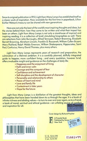 Light from Many Lamps is a distillation of the greatest thoughts, ideas and philosophies that have been handed down to us through the ages. It is a book of infinite richness and abiding values—to turn to over and over again, as to a friend; a book of moral, spiritual and ethical guidance-an unfailing source of comfort and inspiration for all.