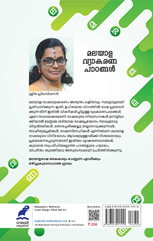 മലയാള ഭാഷാവ്യാകരണം അത്യന്തം ലളിതവും സമഗ്രവുമായി പ്രതിപാദിക്കുന്ന കൃതി. ഉചിതമായ വിധത്തിൽ ഭാഷ പ്രയോഗിക്കുന്നതിന് ഇതിൽ വിശദീകരിച്ചിട്ടുള്ള വ്യാകരണപാഠങ്ങൾ ഏറെ സഹായകരമാണ്. ഭാഷയുടെ നിബന്ധനകൾ മനസ്സിലാക്കിയാൽ മാത്രമേ ശരിയായ ഭാഷാപ്രയോഗം സാദ്ധ്യമാവൂ. വിദ്യാർത്ഥികൾ, മത്സരപ്പരീക്ഷയ്ക്കു തയ്യാറെടുക്കുന്നവർ, സാഹിത്യപ്രേമികൾ, ഭാഷാസ്നേഹികൾ എന്നിങ്ങനെ മലയാള ഭാഷയുടെ വിനിയോഗം ആവശ്യമുള്ളവർക്ക് നിശ്ചയമായും പ്രയോജനപ്പെടുന്നതാണ് ഇതിലെ വ്യാകരണഭാഗങ്ങൾ. കൂടാതെ സുപരിചിതമല്ലാത്ത പദങ്ങളുടെ പര്യായം, വിപരീതം തുടങ്ങിയവ അനുബന്ധമായി ചേർത്തിരിക്കുന്നു.