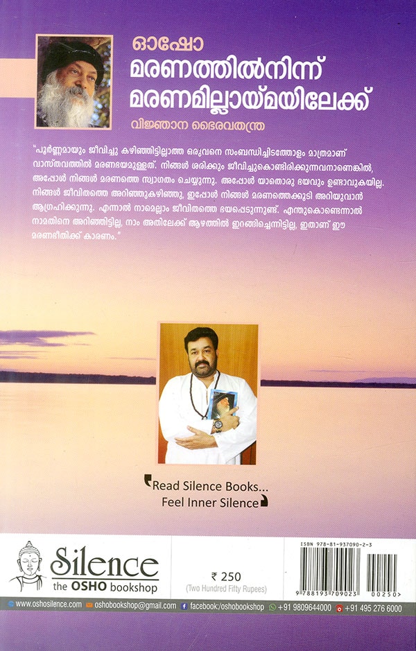 “പൂർണ്ണമായും ജീവിച്ചു കഴിഞ്ഞിട്ടില്ലാത്ത ഒരുവനെ സംബന്ധിച്ചിടത്തോളം മാത്രമാണ് വാസ്തവത്തിൽ മരണഭയമുള്ളത്. നിങ്ങൾ ശരിക്കും ജീവിച്ചുകൊണ്ടിരിക്കുന്നവനാണെങ്കിൽ, അപ്പോൾ നിങ്ങൾ മരണത്തെ സ്വാഗതം ചെയ്യുന്നു. അപ്പോൾ യാതൊരു ഭയവും ഉണ്ടാവുകയില്ല. നിങ്ങൾ ജീവിതത്തെ അറിഞ്ഞുകഴിഞ്ഞു. ഇപ്പോൾ നിങ്ങൾ മരണത്തെക്കൂടി അറിയുവാൻ ആഗ്രഹിക്കുന്നു. എന്നാൽ നാമെല്ലാം ജീവിതത്തെ ഭയപ്പെടുന്നുണ്ട്. എന്തുകൊണ്ടെന്നാൽ നാമതിനെ അറിഞ്ഞിട്ടില്ല, നാം അതിലേക്ക് ആഴത്തിൽ ഇറങ്ങിച്ചെന്നിട്ടില്ല. ഇതാണ് ഇ മരണഭീതിക്ക് കാരണം.