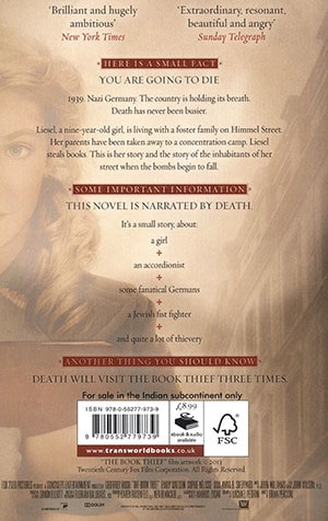 Her parents have been taken away to a concentration camp. Liesel steals books. This is her story and the story of the inhabitants of her street when the bombs begin to fall.