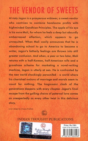 At sixty Jagan is a prosperous widower, a sweet-vendor who contrives to combine handsome profits with highminded Gandhian Principles. The apple of his eye is his sone Mali, for whom he feels a deep but absurdly embarrassed affection, which appears to go unrequited. When Mali coolly announces that he is abandoning school to go to America to become a writer, Jagan’s fatherly feelings are thrown into still greater confusion. And when, a year or two later, Mali returns with a half-Korean, half-American wife and a grandiose scheme for marketing a novel-writing machine, Jagan is utterly at sea. He is confronted by the new world shockingly personifed – a world where his cherished notions of marriage and morals seem to count for nothing. The tragicomic clash of the generations deepens with every chapter. Jagan’s final escape from the galling chains of paternal love comes as unexpectedly as every other twist in this delicious story.